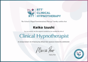 On April 25, 2025, Keiko Izushi officially received her RTT certification, marking another intentional step in her evolution as a transformational healer and hypnotherapist.
